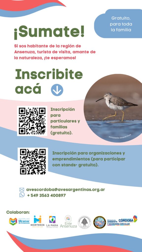 Organizado por Aves Argentinas, WHSRN (Red Hemisférica de Reservas para Aves Playeras), Manomet y Fundación Lideres de Ansenuza, se llevara a cabo por primera vez en la región, el Festival Migratorio de Ansenuza que se desarrollará los días 6, 7 y 8 de diciembre en Miramar de Ansenuza, Morteros y La Para.