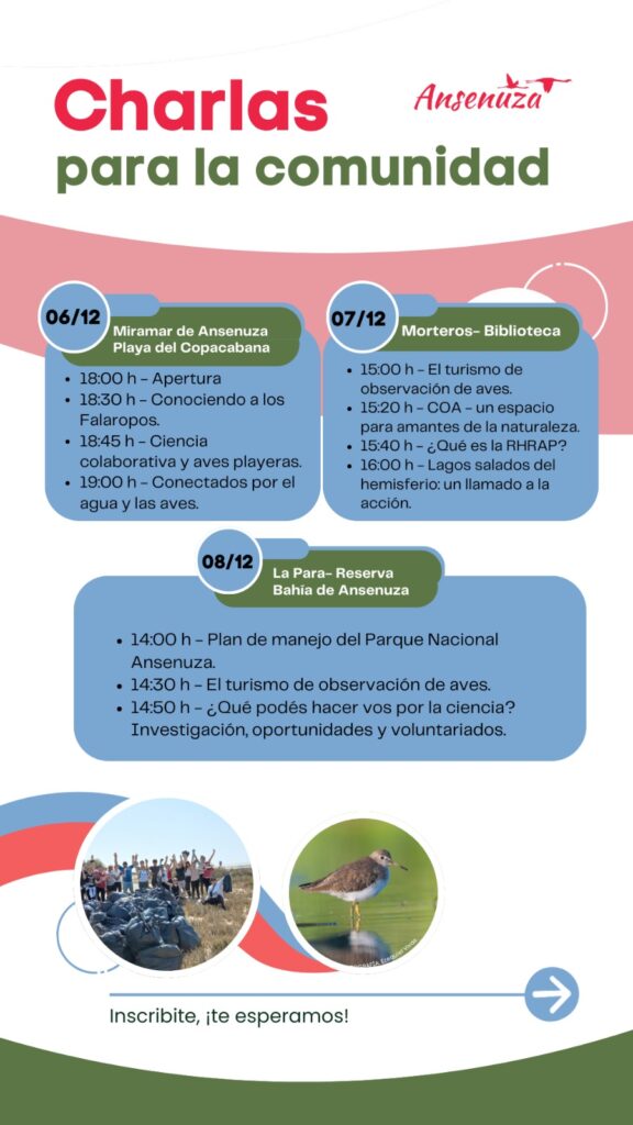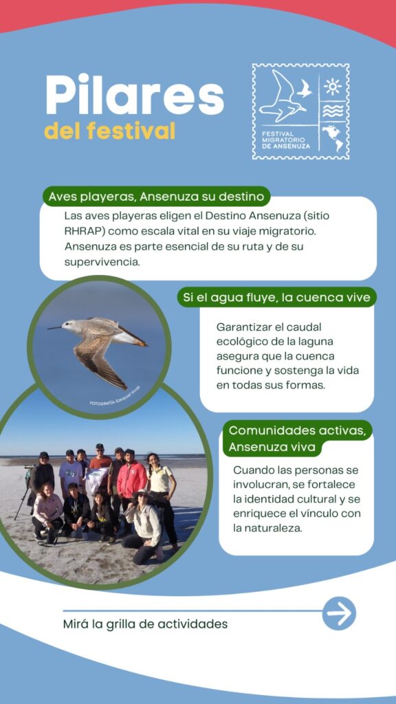 Organizado por Aves Argentinas, WHSRN (Red Hemisférica de Reservas para Aves Playeras), Manomet y Fundación Lideres de Ansenuza, se llevara a cabo por primera vez en la región, el Festival Migratorio de Ansenuza que se desarrollará los días 6, 7 y 8 de diciembre en Miramar de Ansenuza, Morteros y La Para.